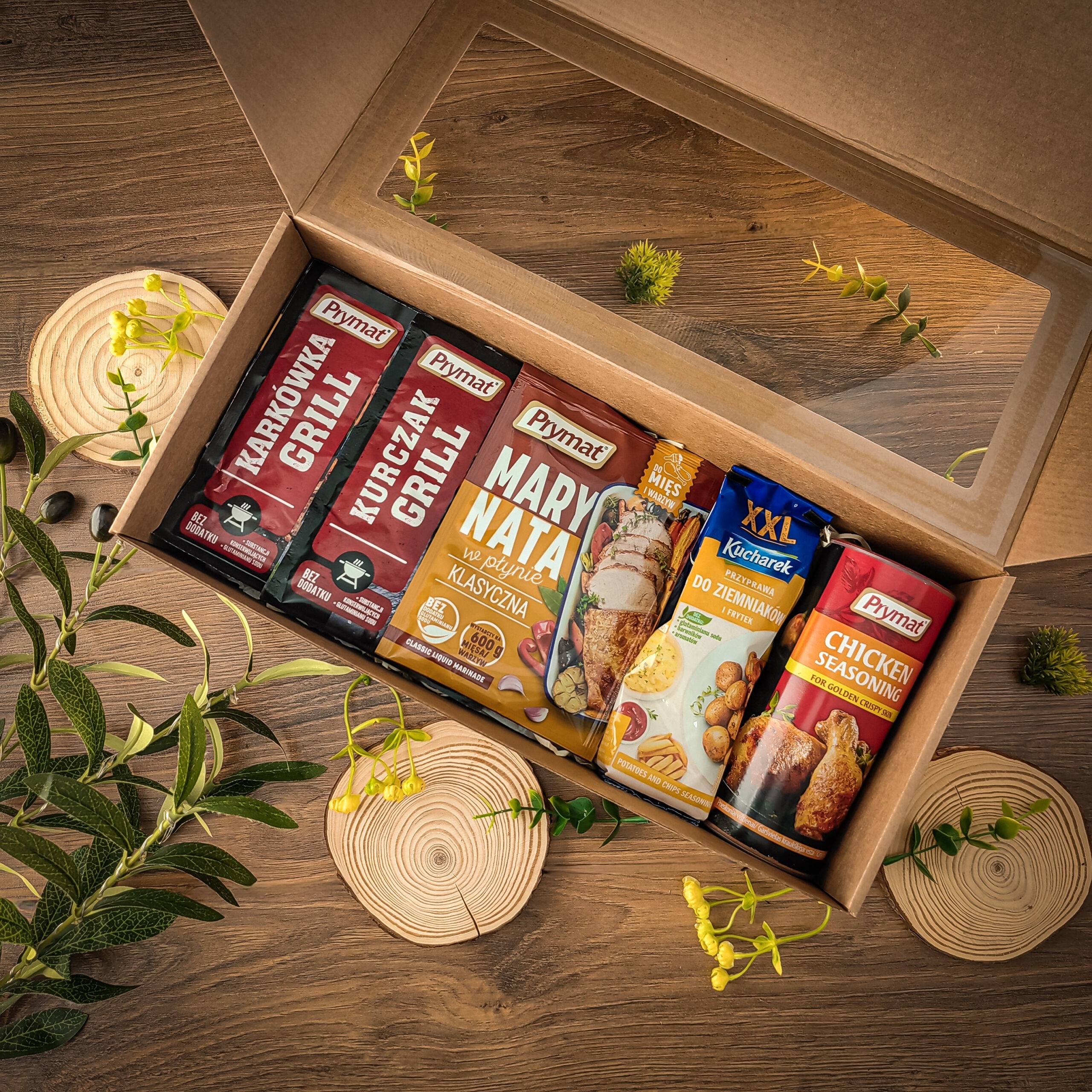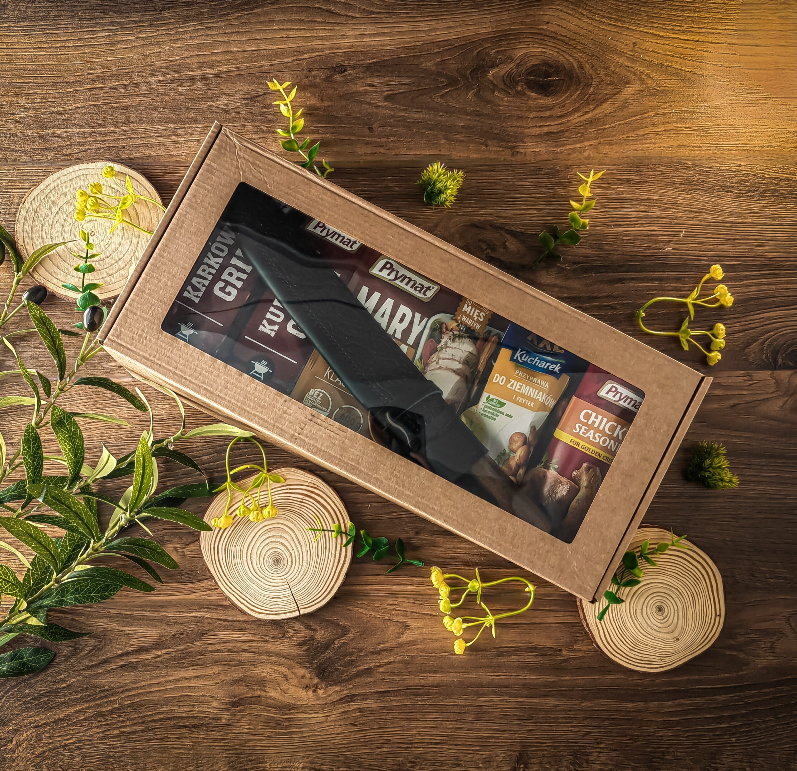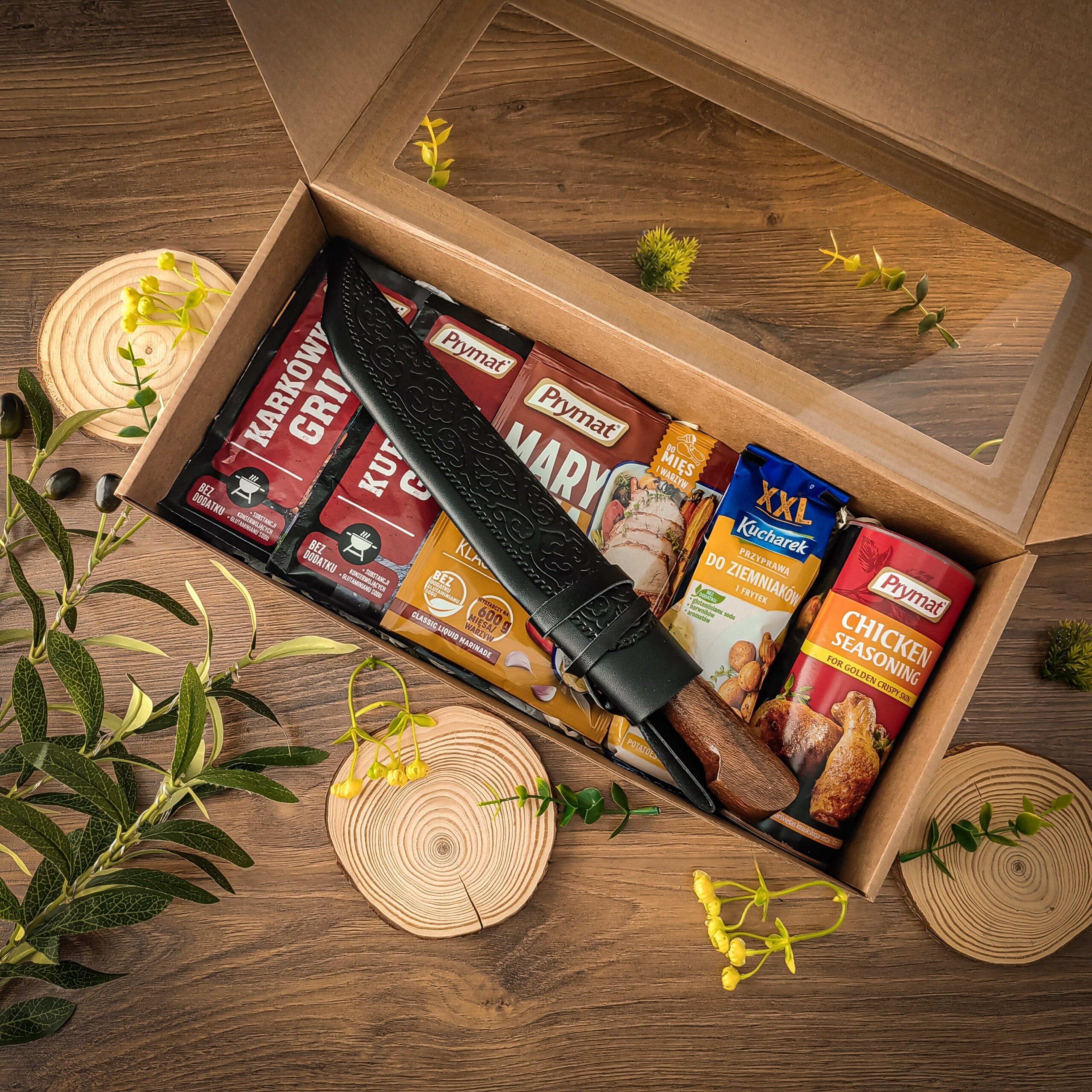 Практичный и универсальный набор для тех, кто любит готовить на гриле или дома. Внутри — приправы для мяса и курицы, классический маринад и специи для гарниров, которые помогут легко раскрыть вкус блюд, а также удобный нож с деревянной ручкой из прочной подшипниковой стали — отличный помощник как на кухне, так и на природе.