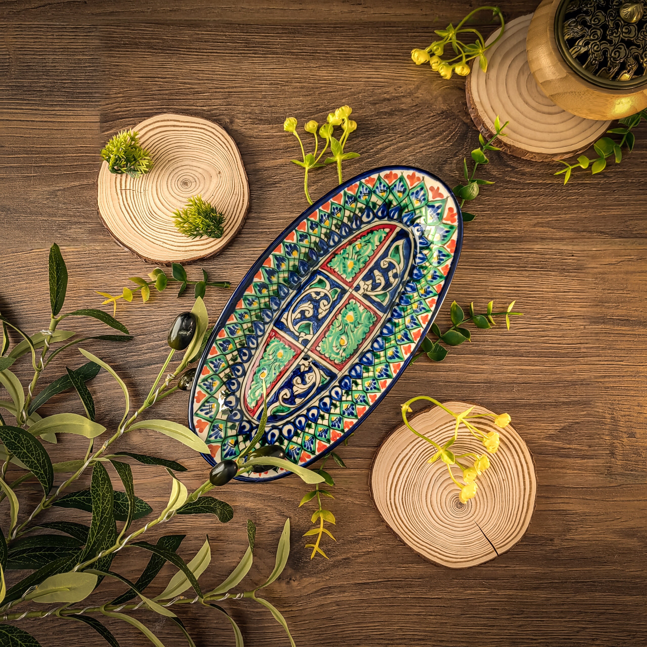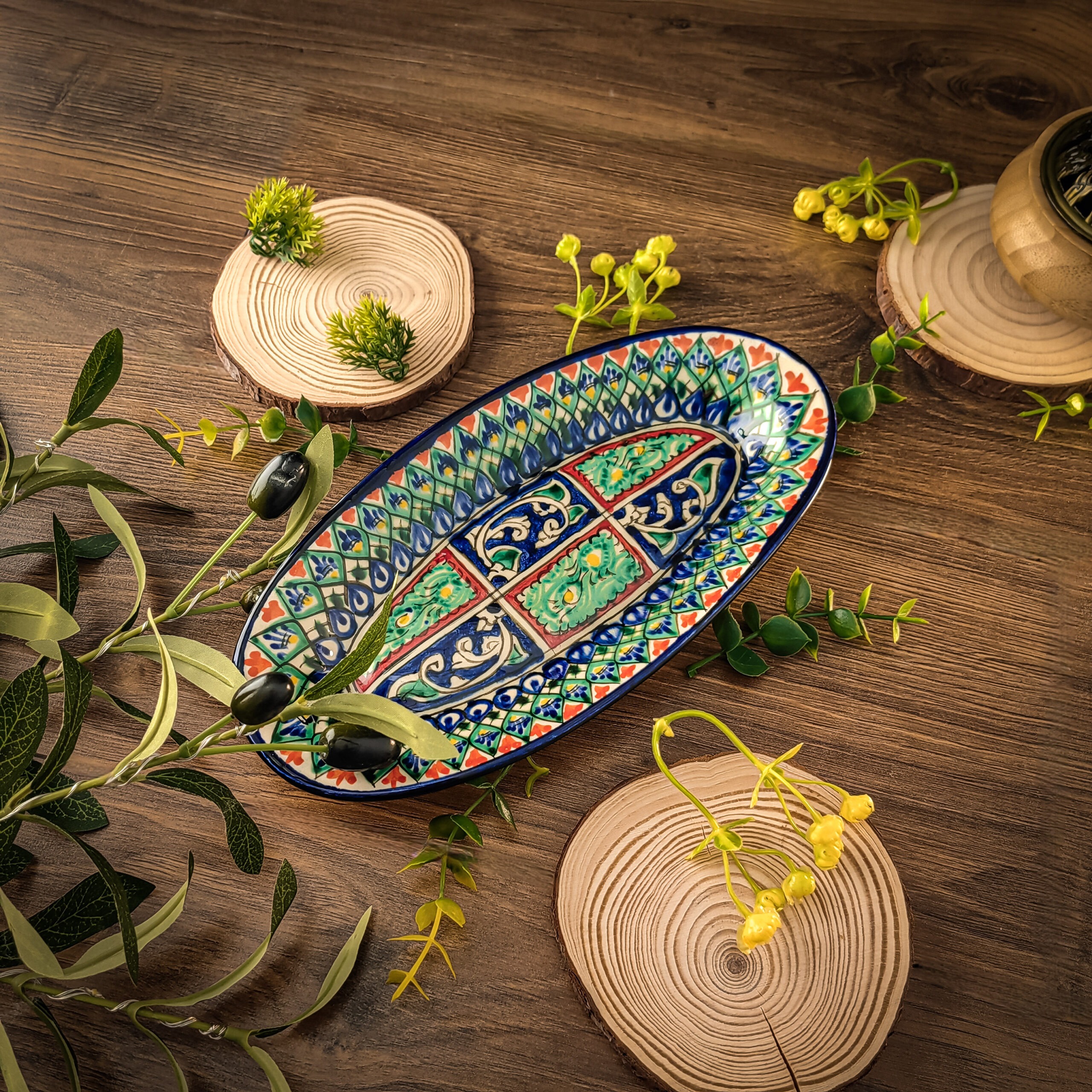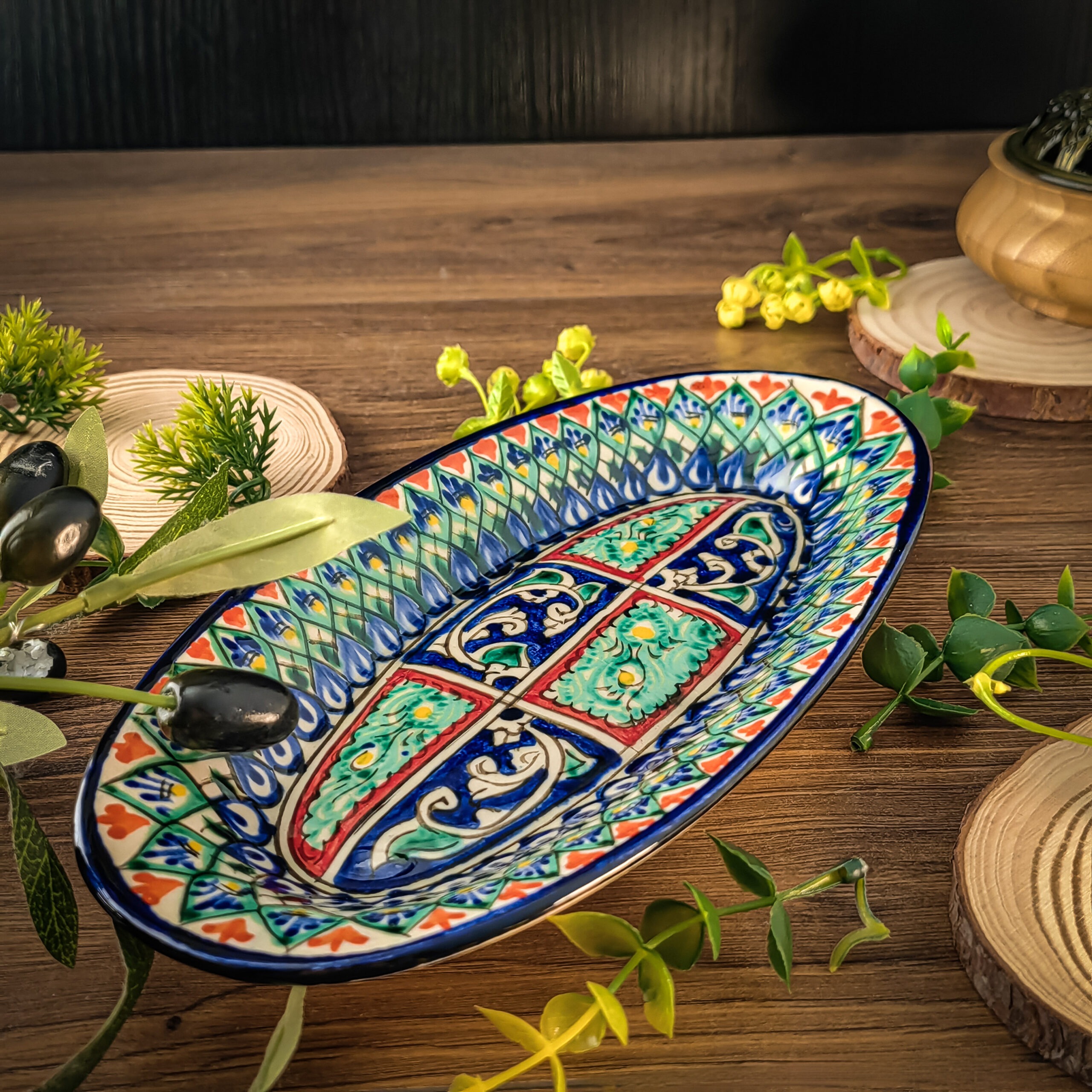 Узбекская овальная тарелка 12×23,5 см для закусок и салатов представляет собой прекрасное сочетание традиций и красоты.