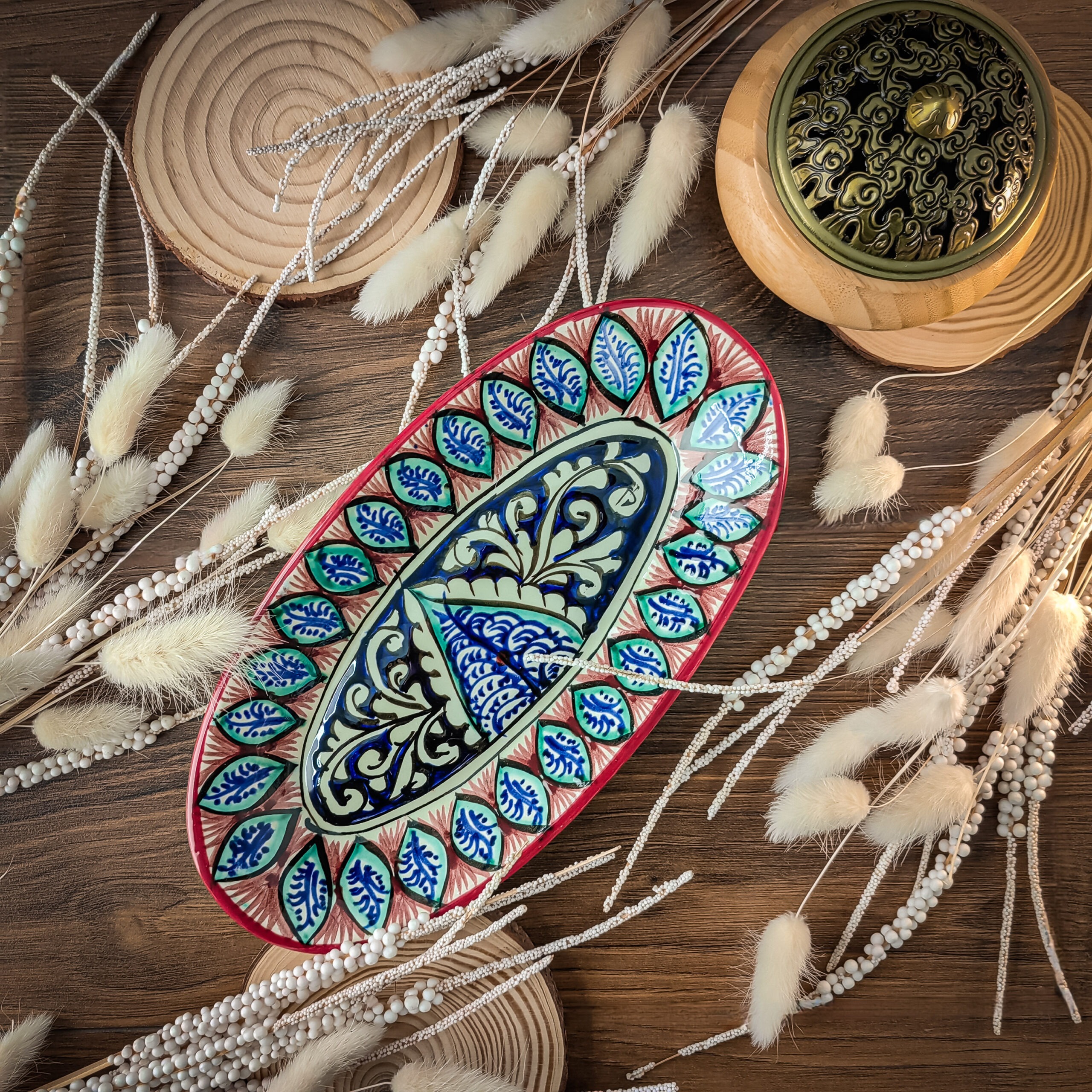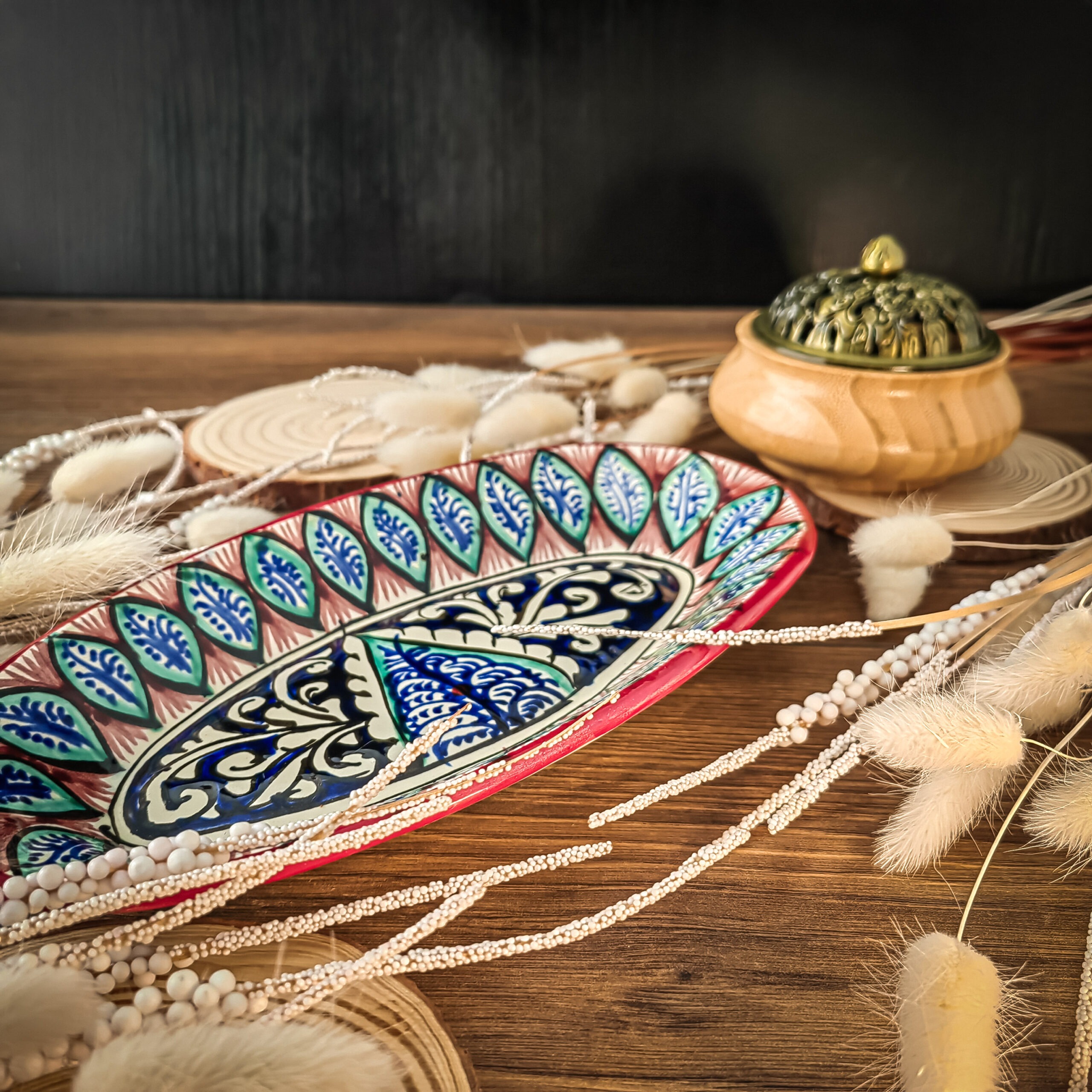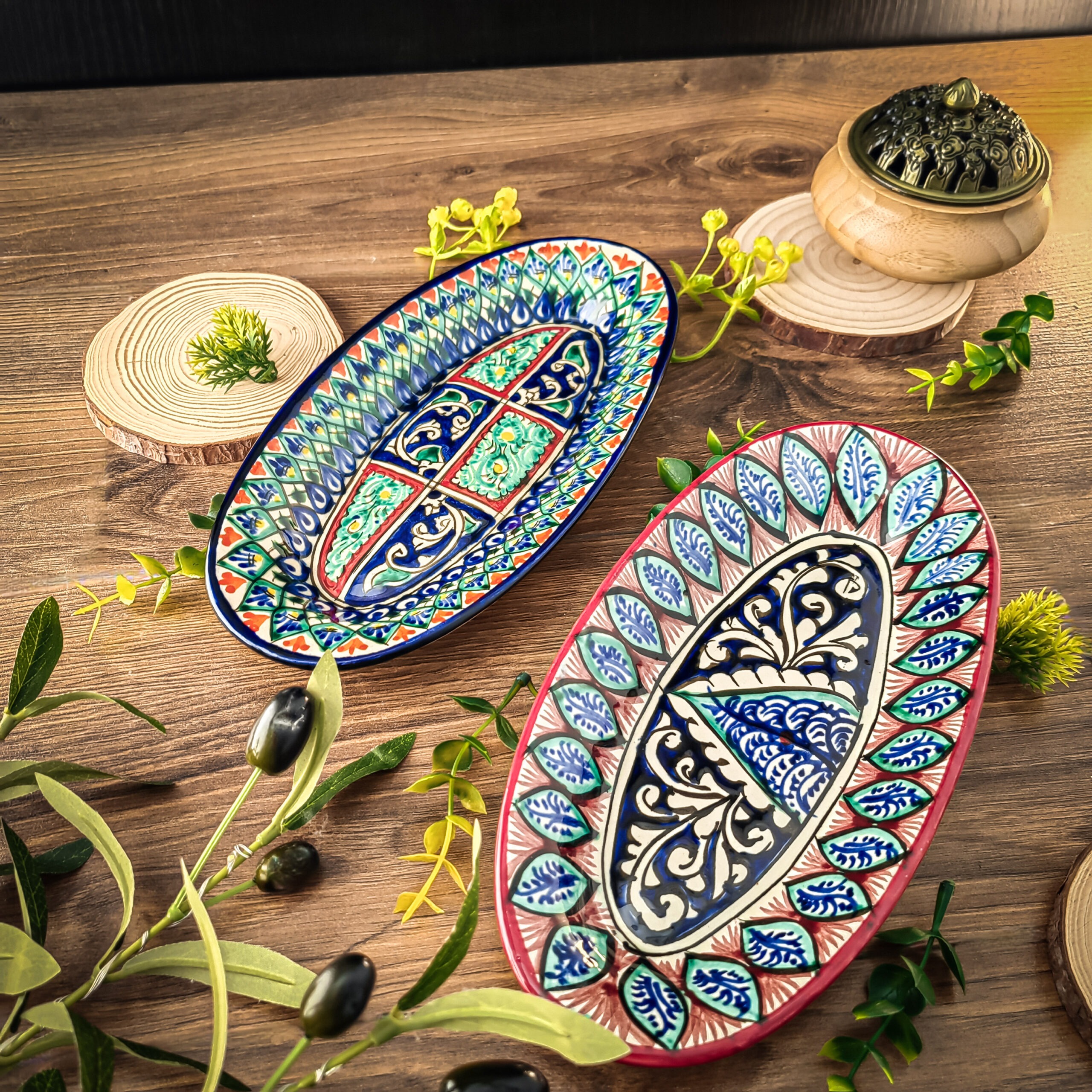 Узбекская овальная тарелка 12×23,5 см для закусок и салатов представляет собой прекрасное сочетание традиций и красоты.