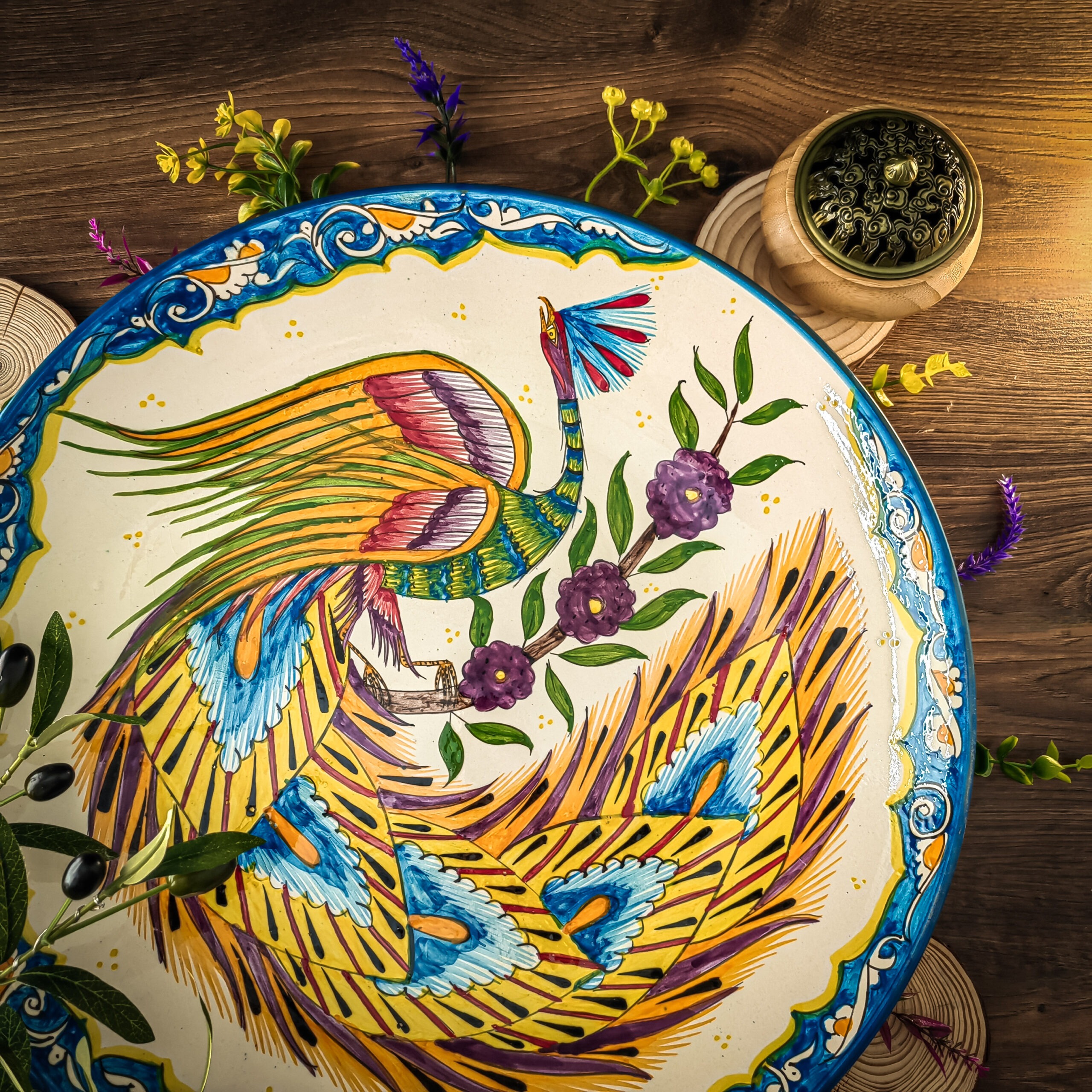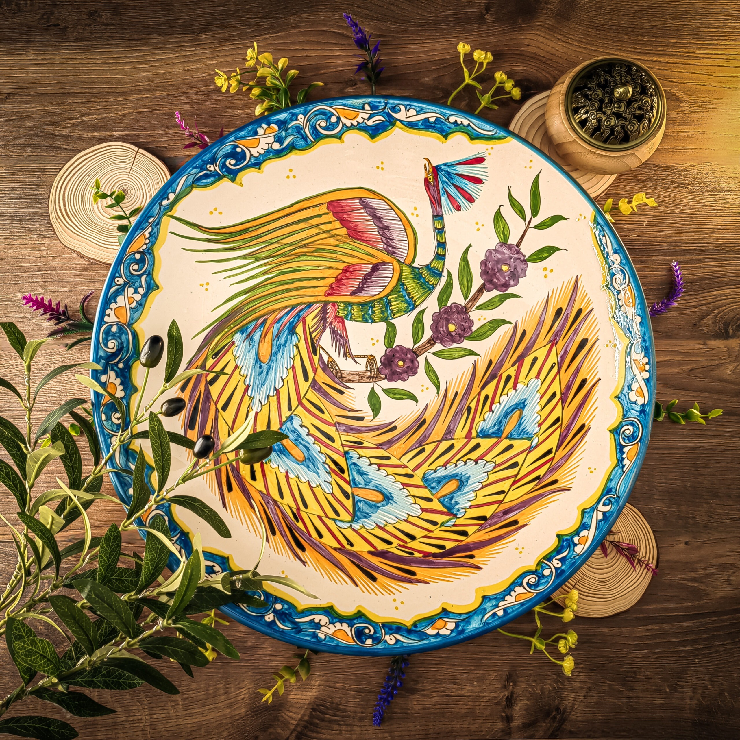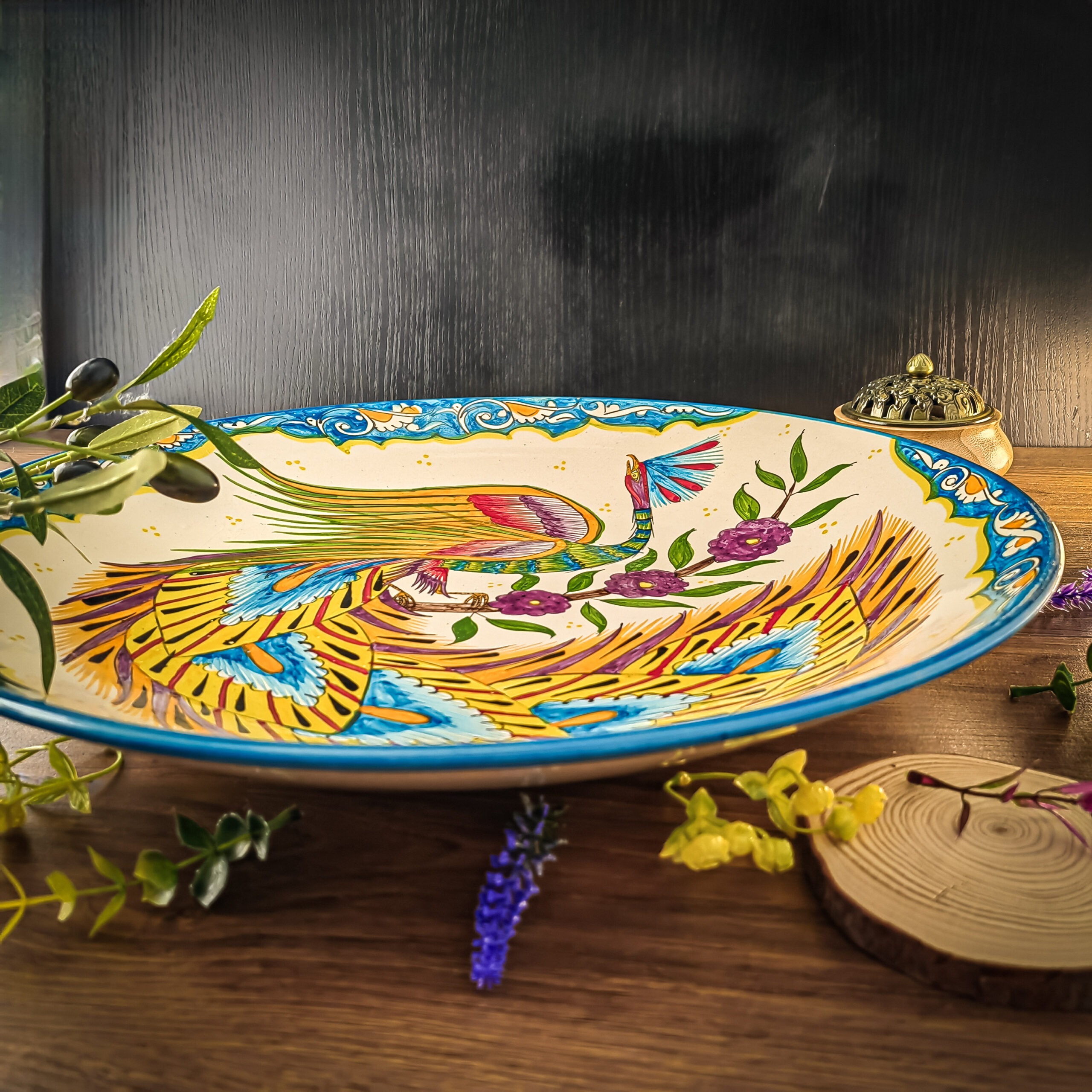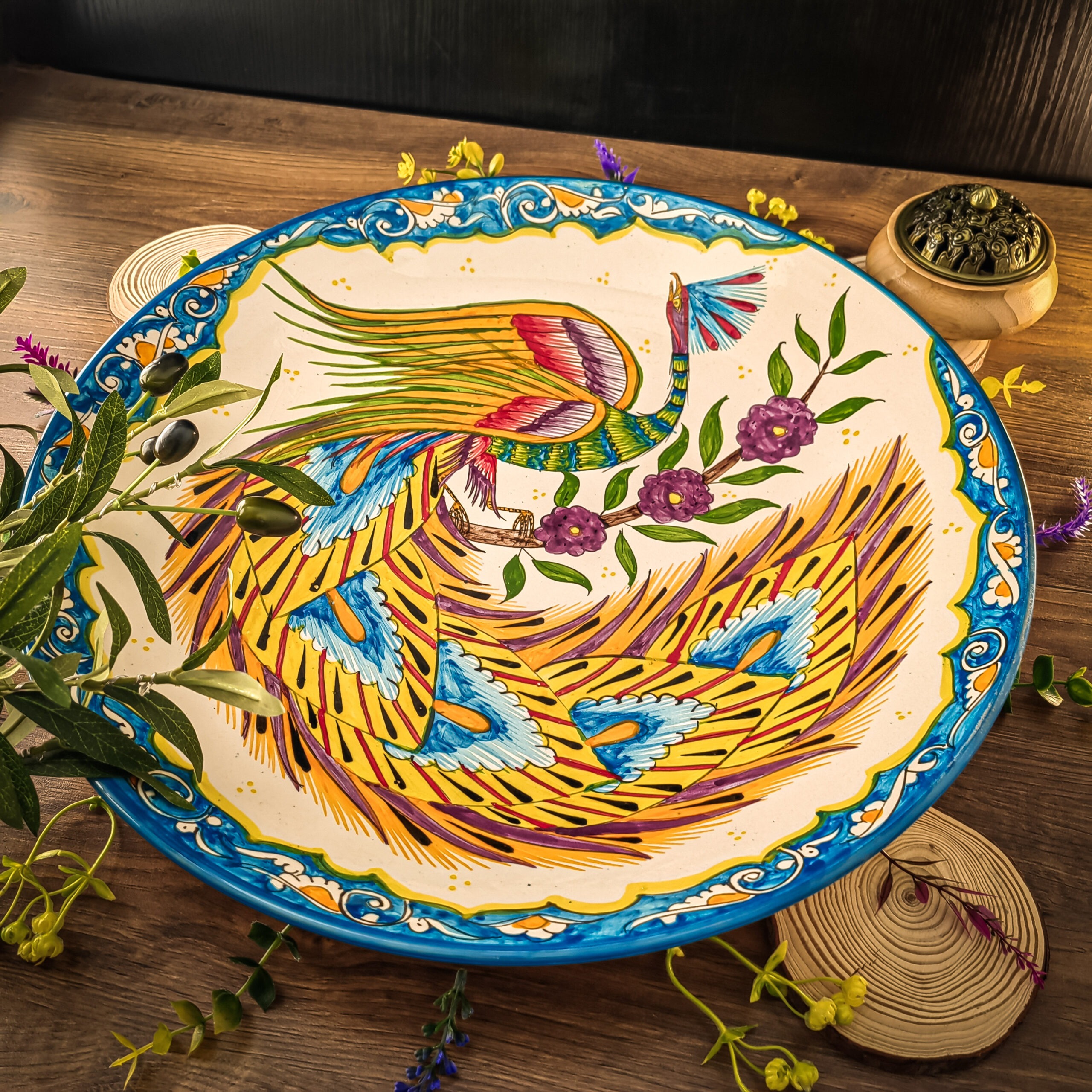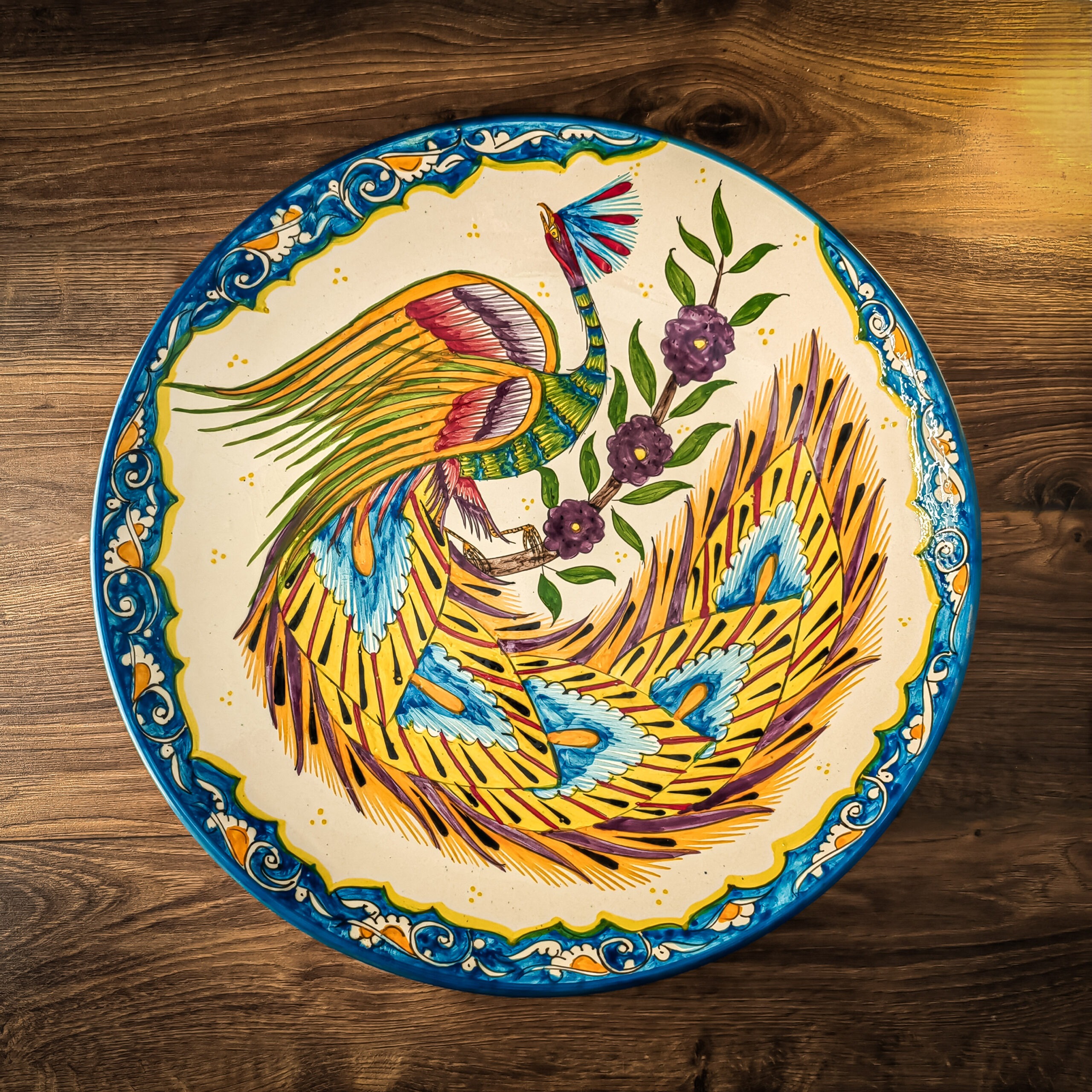 Узбекская тарелка (ляган) “Жар-Птица” 42 см для плова или мяса представляет собой прекрасное сочетание традиций и красоты.