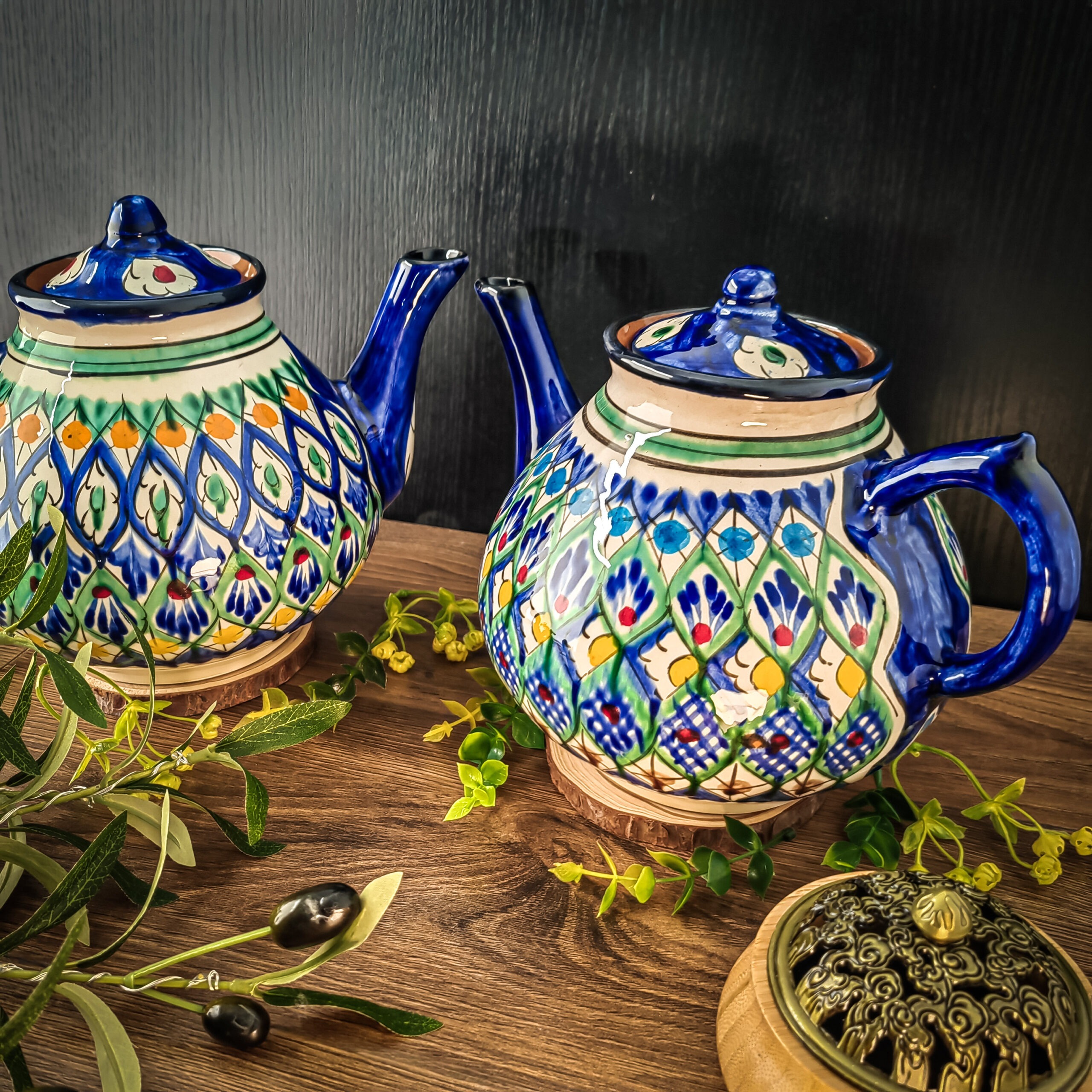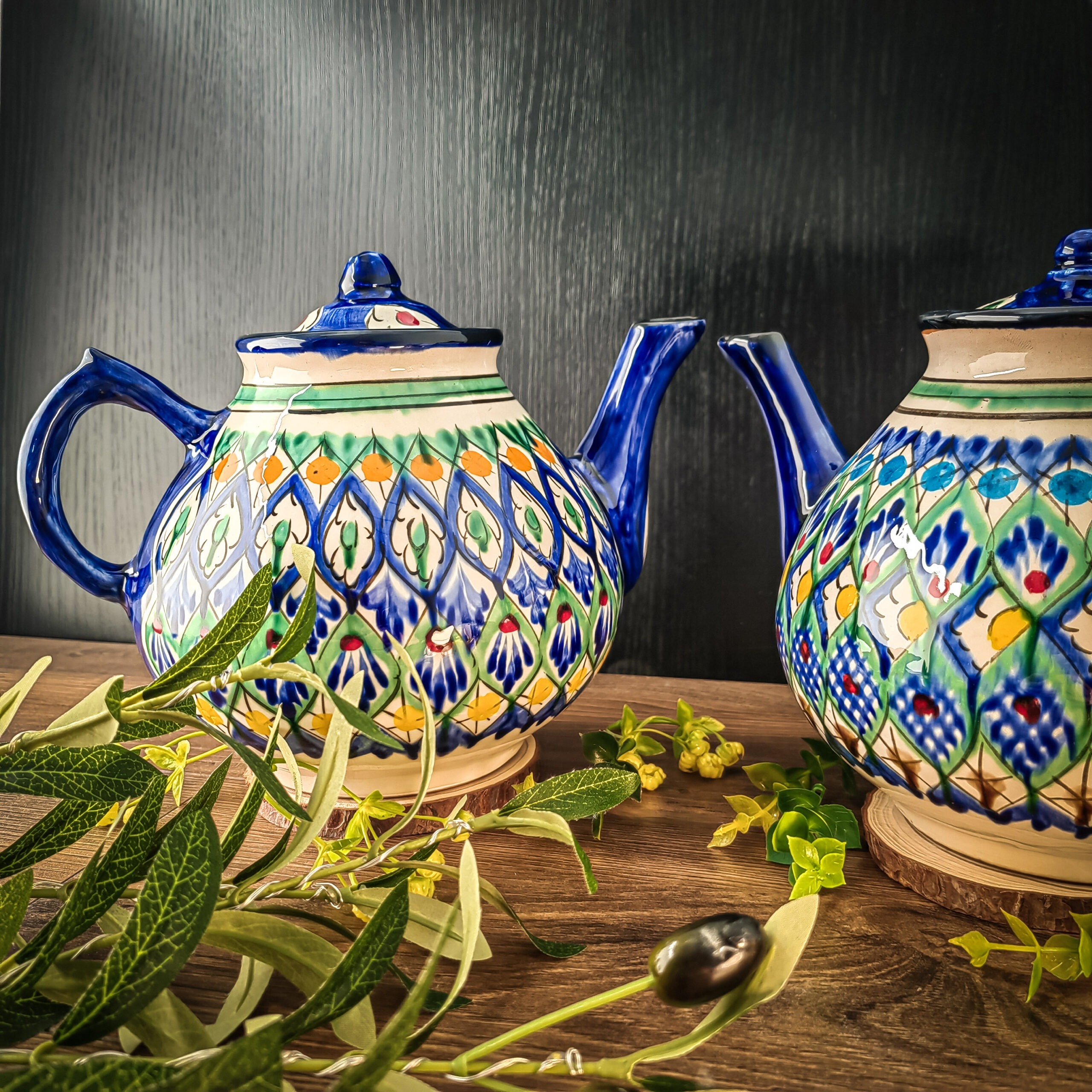 Узбекский керамический чайник 2 литра -это не просто чайник, а красивый предмет искусства.