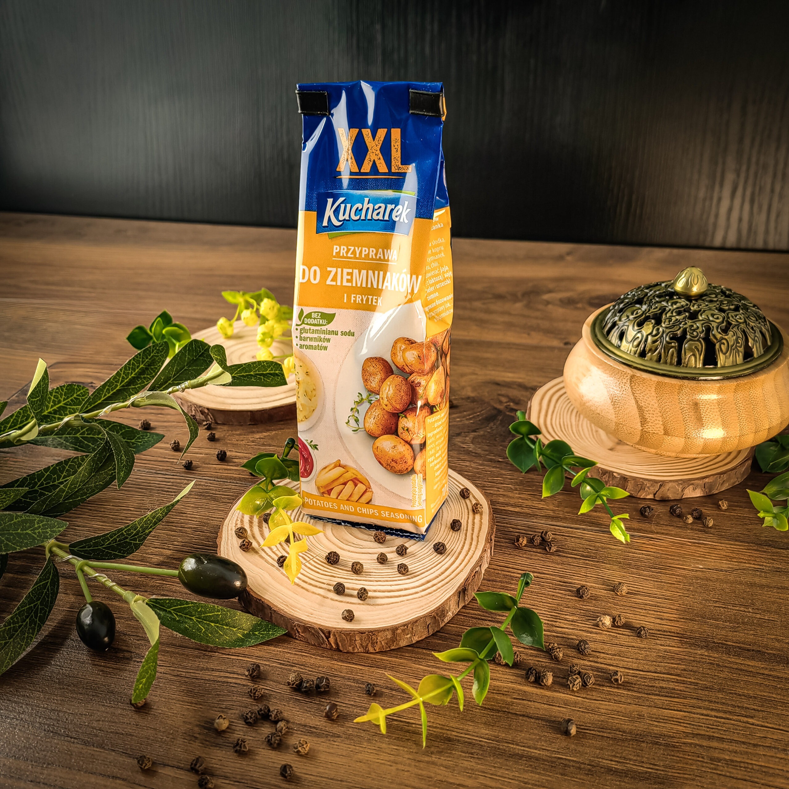 Kucharek potato seasoning is an aromatic blend of carefully selected spices and herbs that helps give dishes a rich flavour and an appetising aroma. Thanks to its balanced composition, the seasoning enhances the natural taste of potatoes, making them more flavourful and appealing.