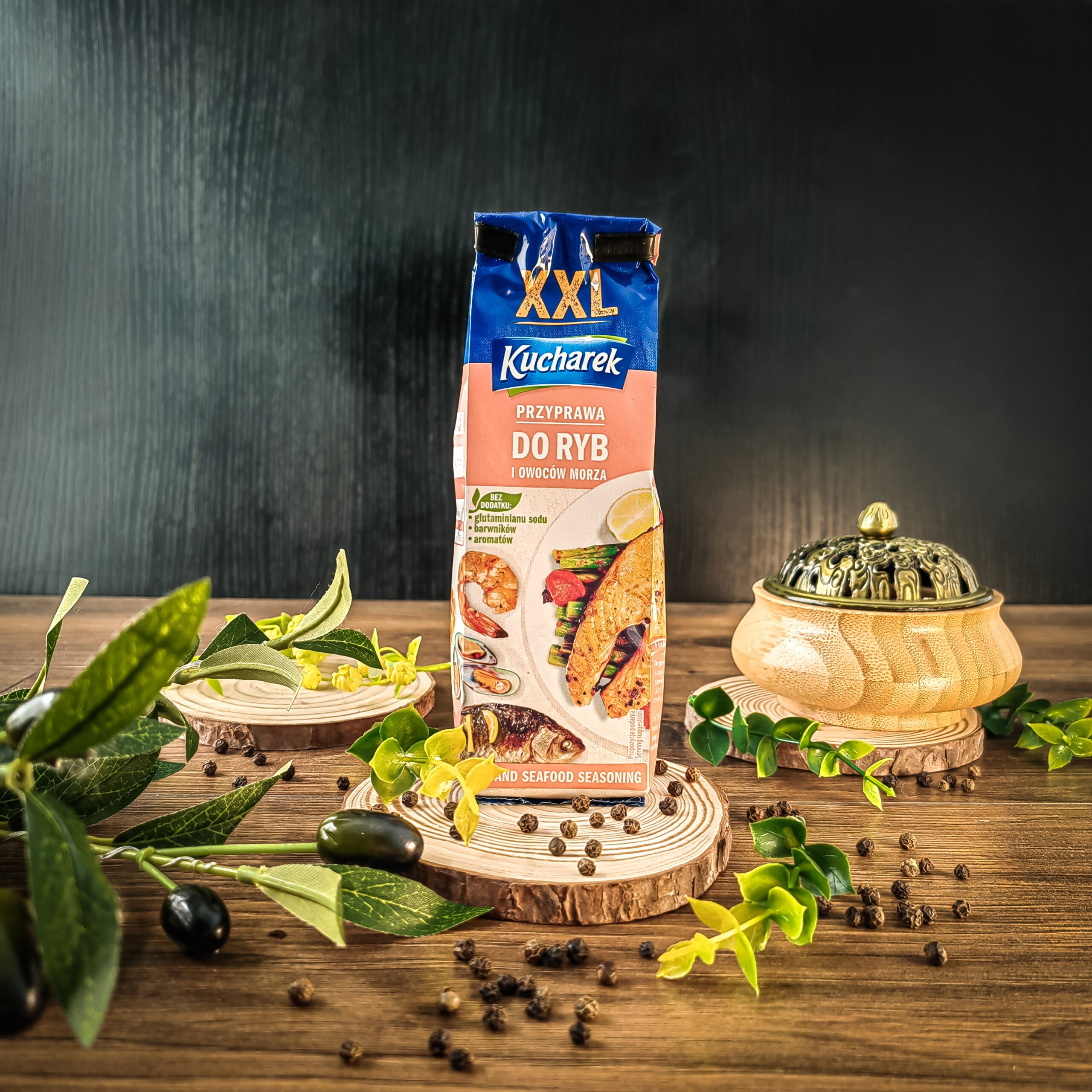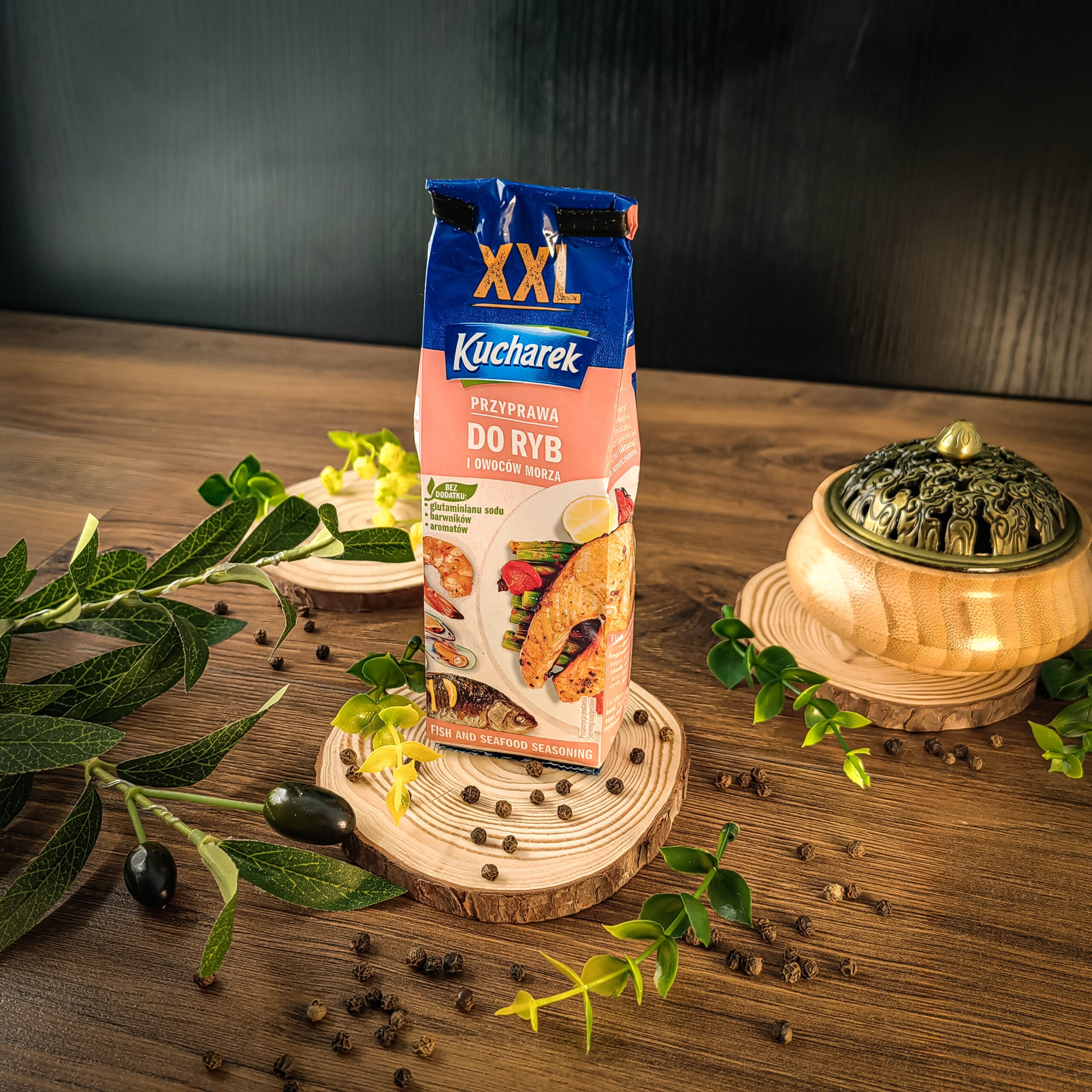 Kucharek Fish and Seafood Seasoning is a carefully selected blend of aromatic spices and herbs that enhances the natural flavour of fish and seafood, giving dishes a rich taste and appetising aroma. Its balanced composition helps make meals juicier and more flavourful.
