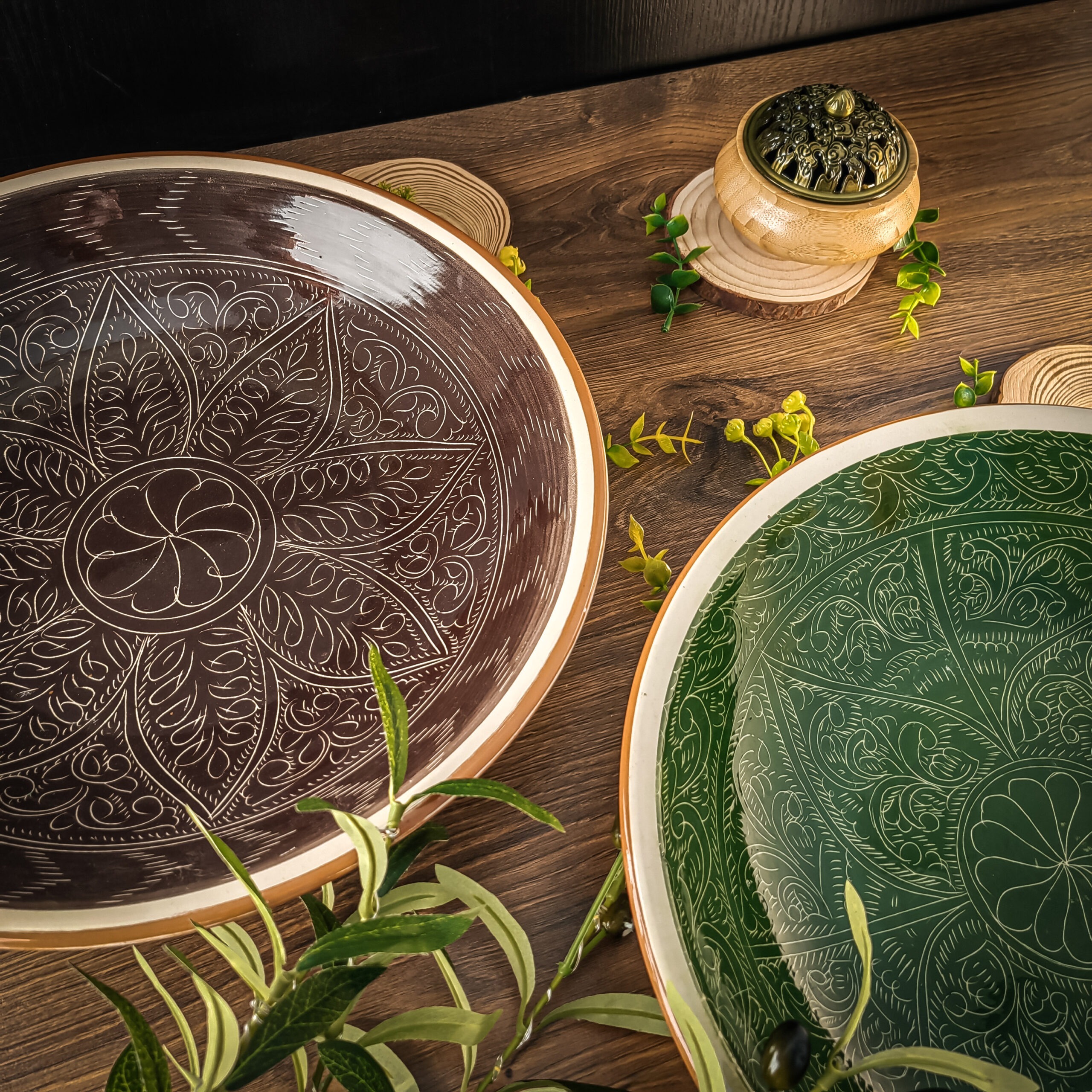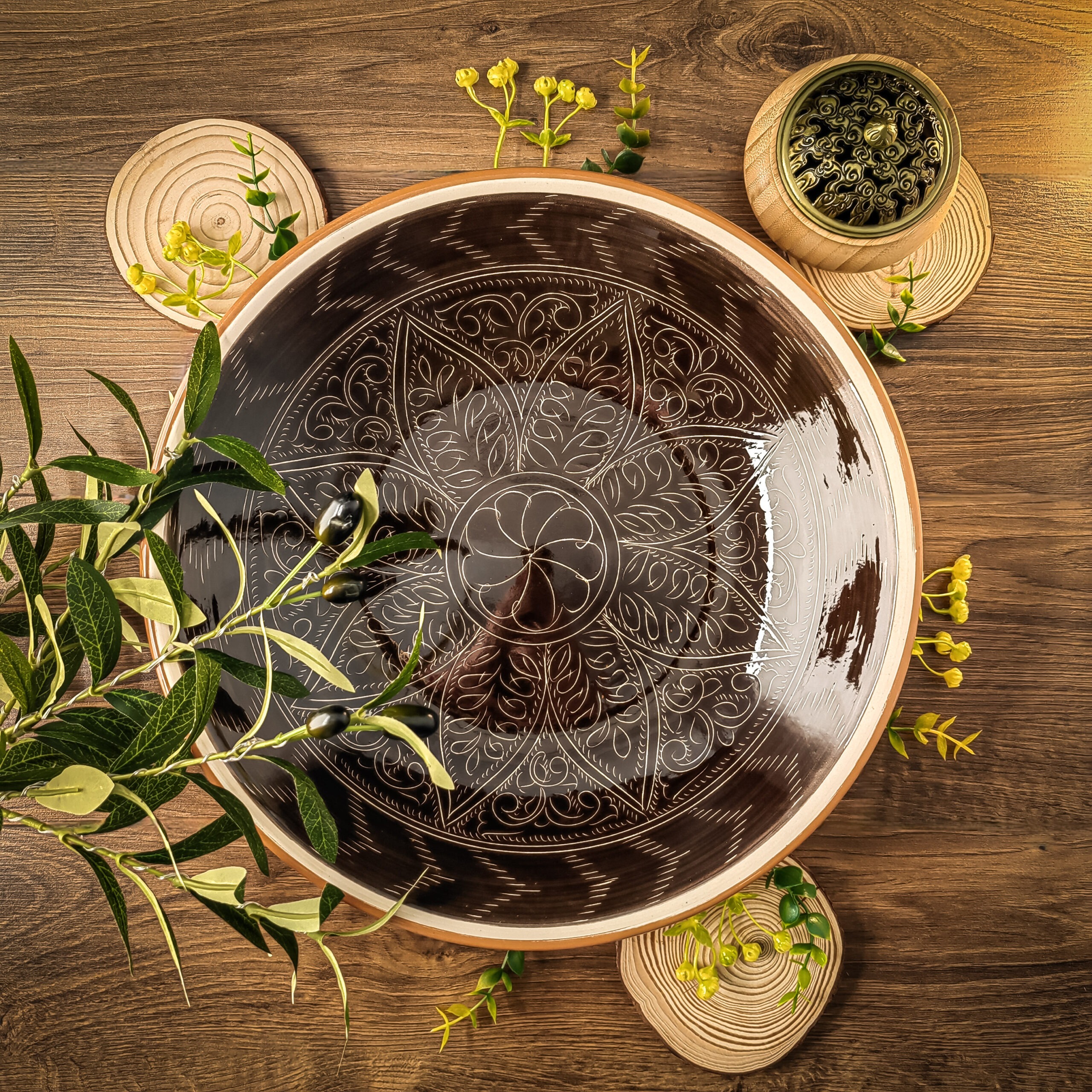 Uzbek Plate (Lyagan) “Brown Pencil” 30 Cm